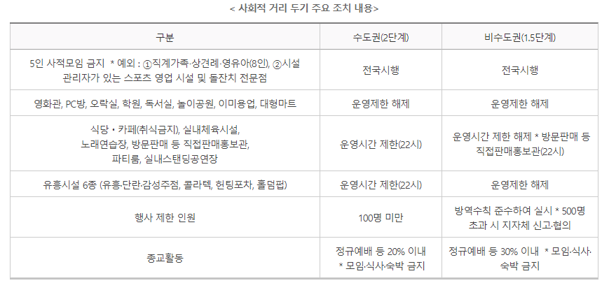 (수도권 2단계, 비수도권 1.5단계)와